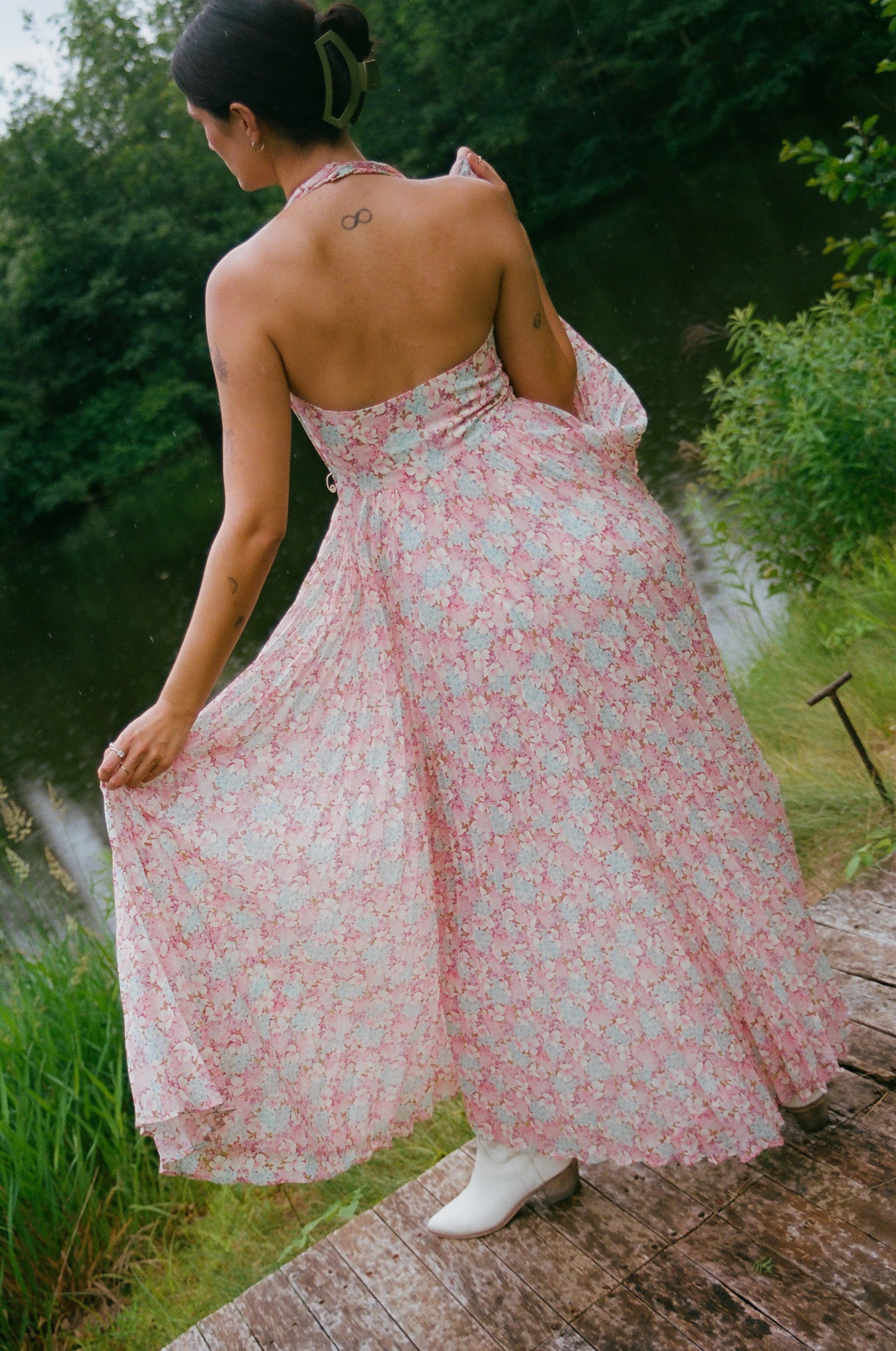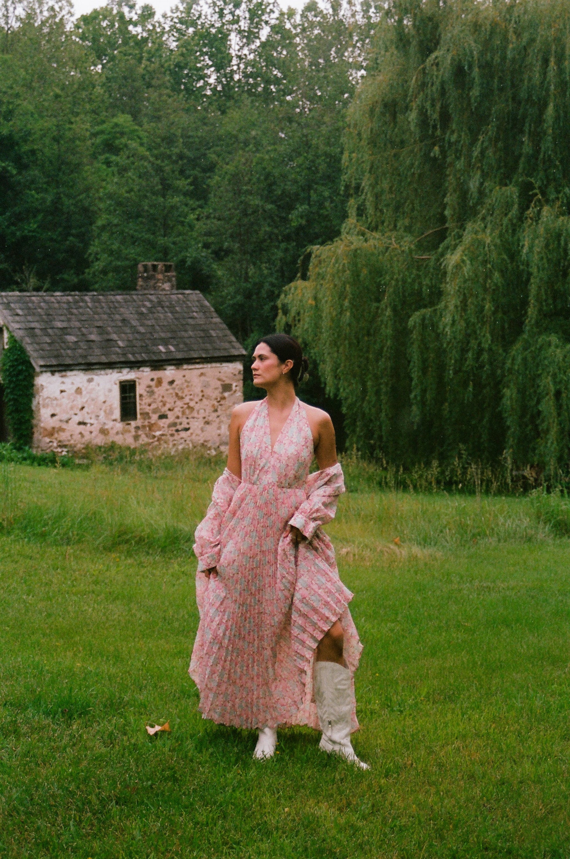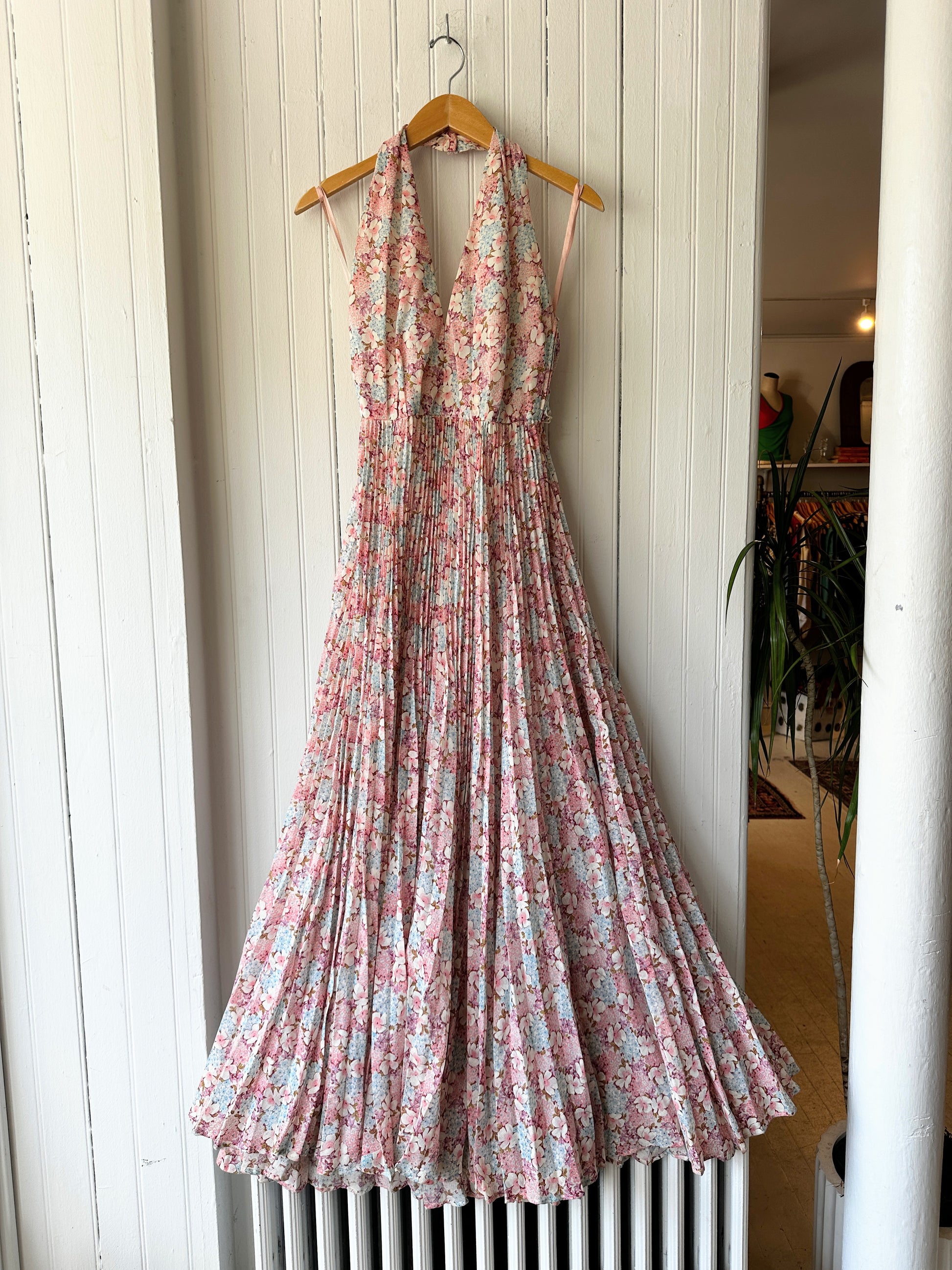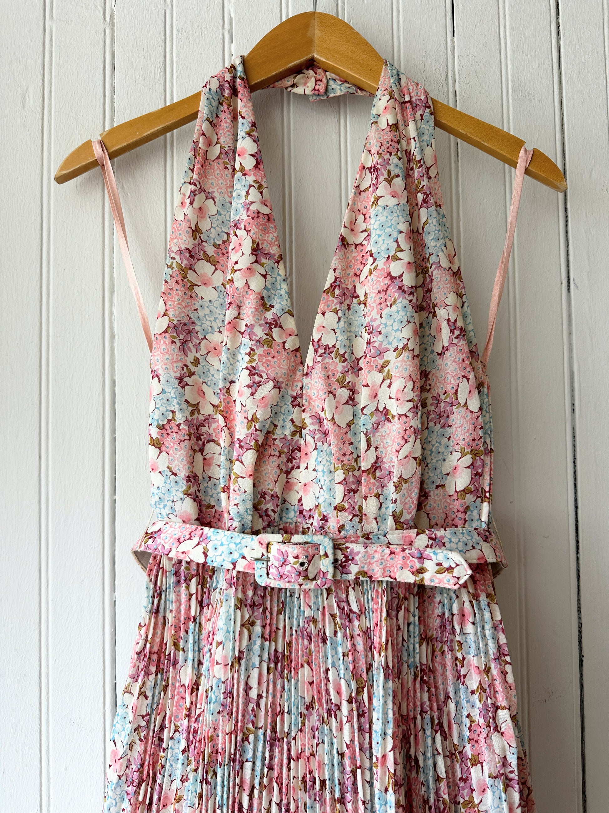 70’s Floral Halter Maxi Dress w/ Matching Shirt & Belt